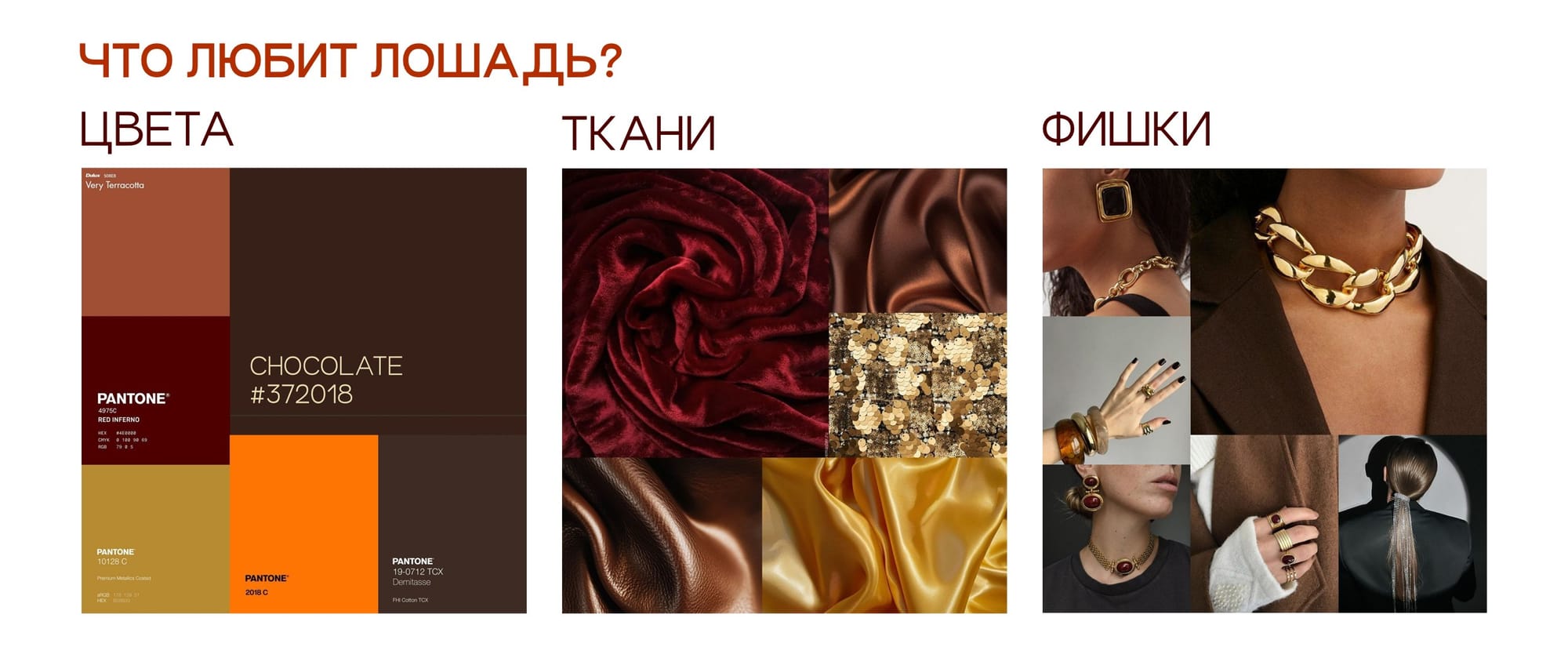 - Подходящие цвета: красный и все его оттенки (бордо, терракота, огненно-оранжевый) и благородные металлики вроде золота. Красный — главный цвет года, и это не случайно: в восточной традиции именно красные наряды привлекают успех и защищают от негатива. Чем насыщеннее и «теплее» оттенок, тем лучше. Для баланса можно добавить и землистые тона, например, шоколадный, карамельный.