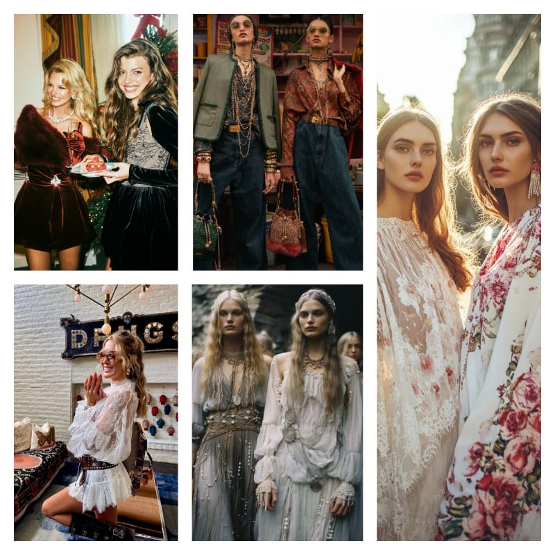 - Фэнтези и винтаж: Новый год — время сказок. Платье в пол в стиле фэнтези-принцессы, кружевная накидка, винтажные украшения — это придаст волшебства домашним праздникам или тематическим вечеринкам. Можно почувствовать себя героиней фэнтези-фильма.